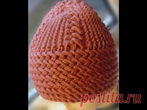 Шапочка двома спицями ,узором "Резинка з косими витягнутими петлями".