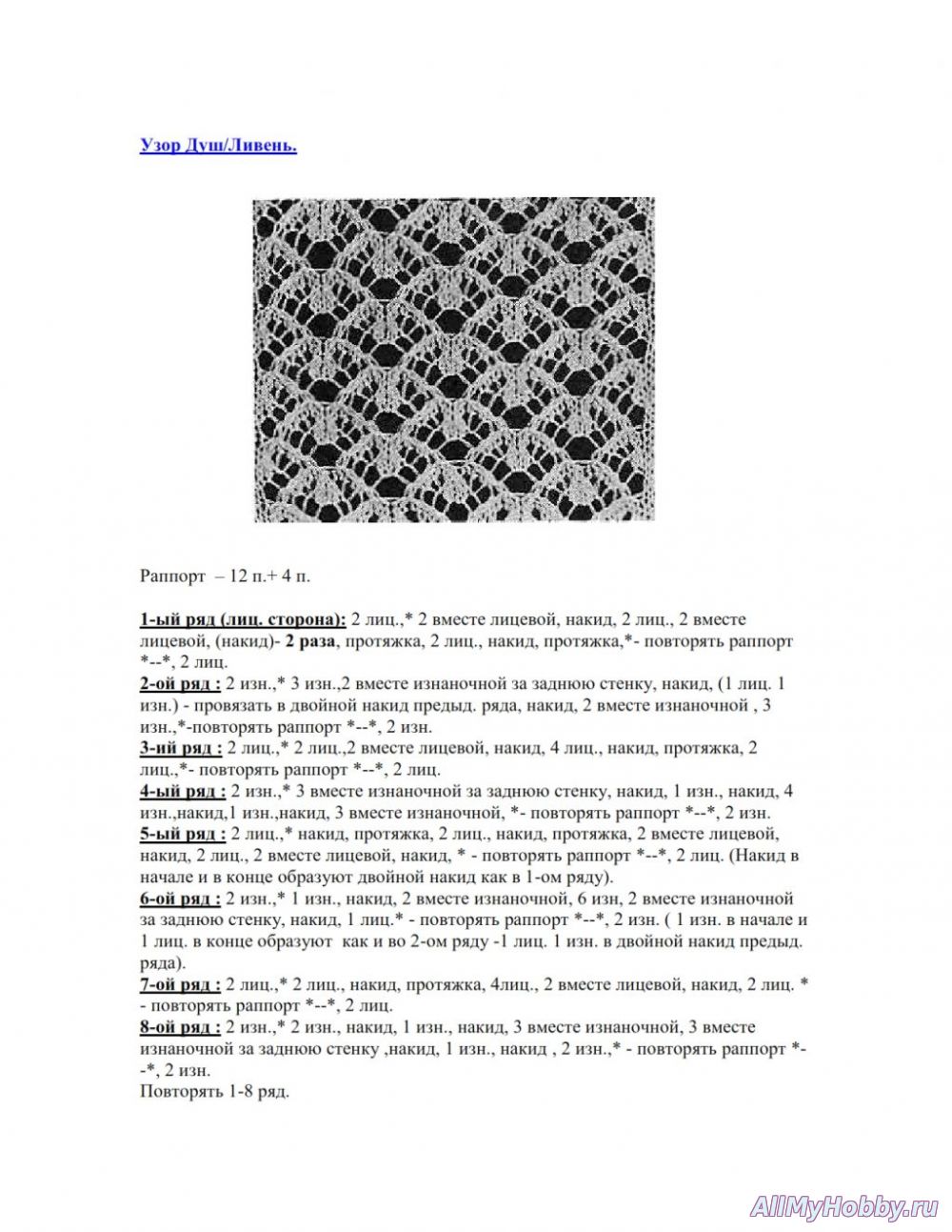 Узор для вязания спицами №154.Схема для вязания спицами №154.