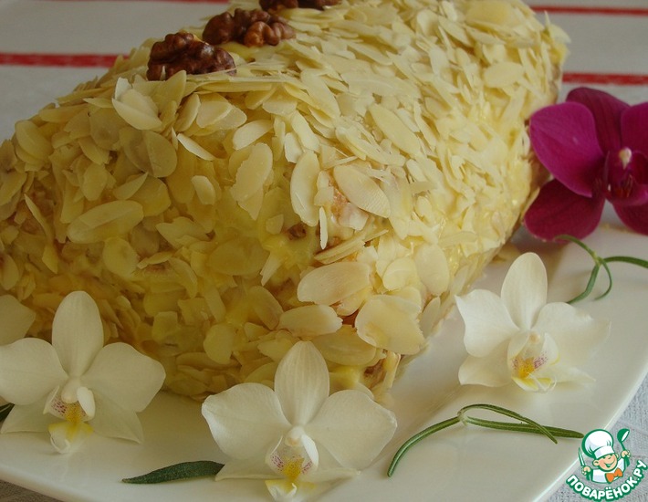 - Настоявшийся торт достали, посыпали сверху миндалем и зовем всех к столу. Нежный, влажный, в меру сладкий торт. Миндаль, напитанный кремом, вносит свою нотку и слегка похрустывает. Вкусно. И не хлопотно. Угощайтесь! Рецепт подсмотрен на сайте ХП у пользователя Lerele и не раз мной опробован в различных вариациях крема и на различных гостях. Всегда вызывает бурю положительных эмоций. Так что и Вам всем советую приготовить!
