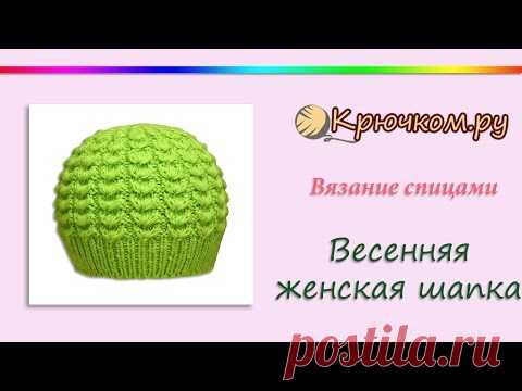 Весенняя женская шапка спицами (Knitting. Spring women's hat)
