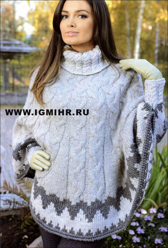 Пончо спицами. Щелкните по картинке, чтобы увидеть ее в большом размере Размер: 44-52 Вам ... Вязаные шедевры: Пончо спицами. Щелкните по картинке, чтобы увидеть ее в большом размере Размер: 44-52 Вам ...