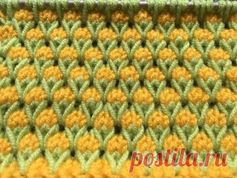 Двухцветный узор с вытянутыми петлями. Узор «Бутончики»