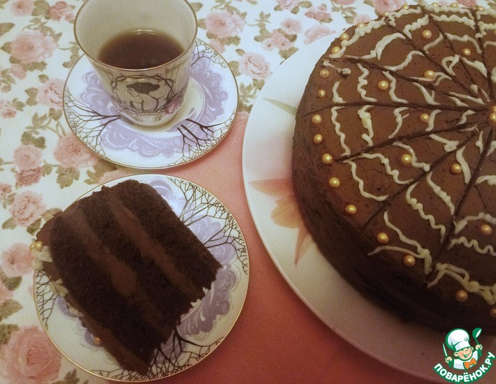 - Жидким, не взбитым шоколадом, пропитываем коржи.
