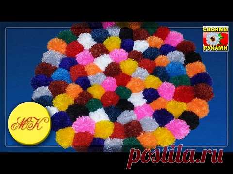 Как сделать коврик из помпонов своими руками. Мастер-класс.