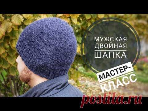 ДВОЙНАЯ МУЖСКАЯ ШАПКА СПИЦАМИ • Подробный МК
