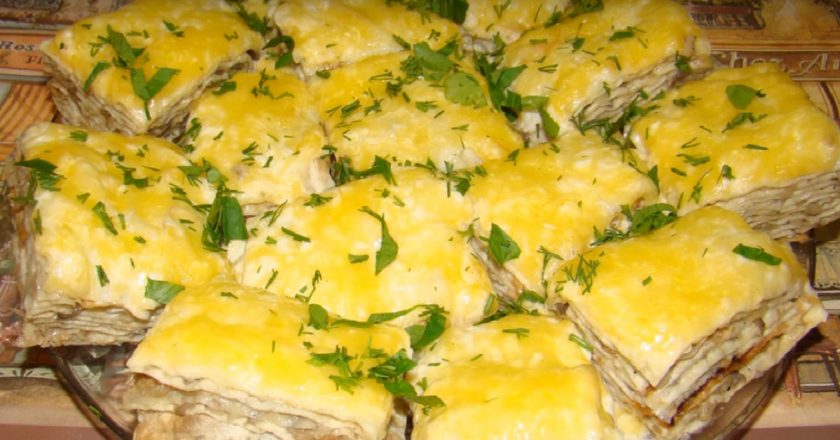 Восхитительные тартинки из лаваша с начинкой из грибов, моркови и лука