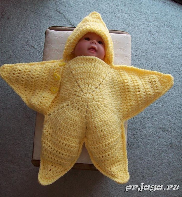 Конверт для новорожденного крючком «Звездочка» Описание: http://prjaga.ru/vyazanie-dlya-detej/konvert-spalnik/konvert-dlya-novorozhdennogo-kryuchkom-zvezdochka