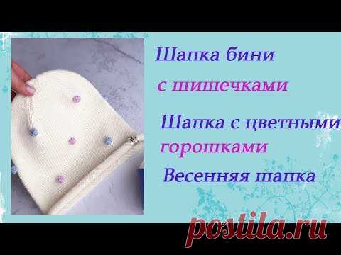 Шапка бини с шишечками. Шапка с цветными горошками. Весенняя шапка 100% меринос.