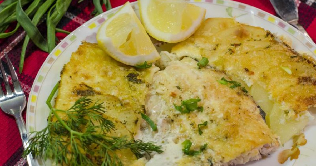 Филе рыбы в духовке в заливке с картошкой Нежная, деликатная рыба хороша с картошкой - получится сытно и вкусно!