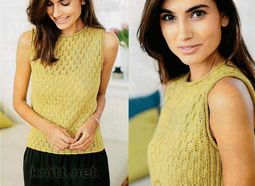 Вязаный ажурный желтый топ.