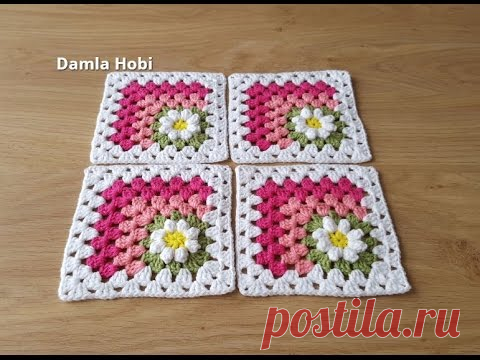 Papatya kare motif yapımı/Örgü modelleri