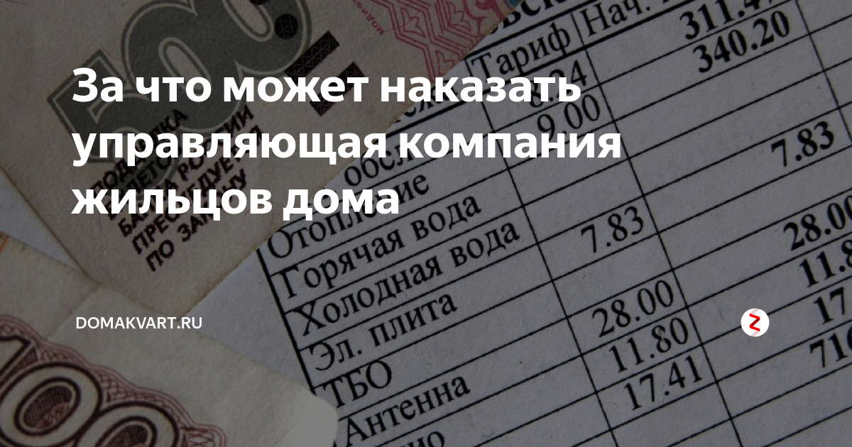 За что может наказать управляющая компания жильцов дома Обязанность за содержание общего имущества многоквартирного дома возложена на управляющую компанию. При наличии нарушений, жильцы дома адресуют в первую очередь свои претензии именно к ней. Последствия многим знакомы, от штрафов на управляющую компанию и до лишения лицензии.