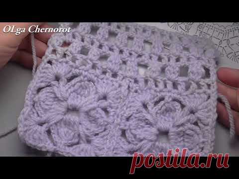Ажурная вставка крючком и треугольник для кофты из квадратов.