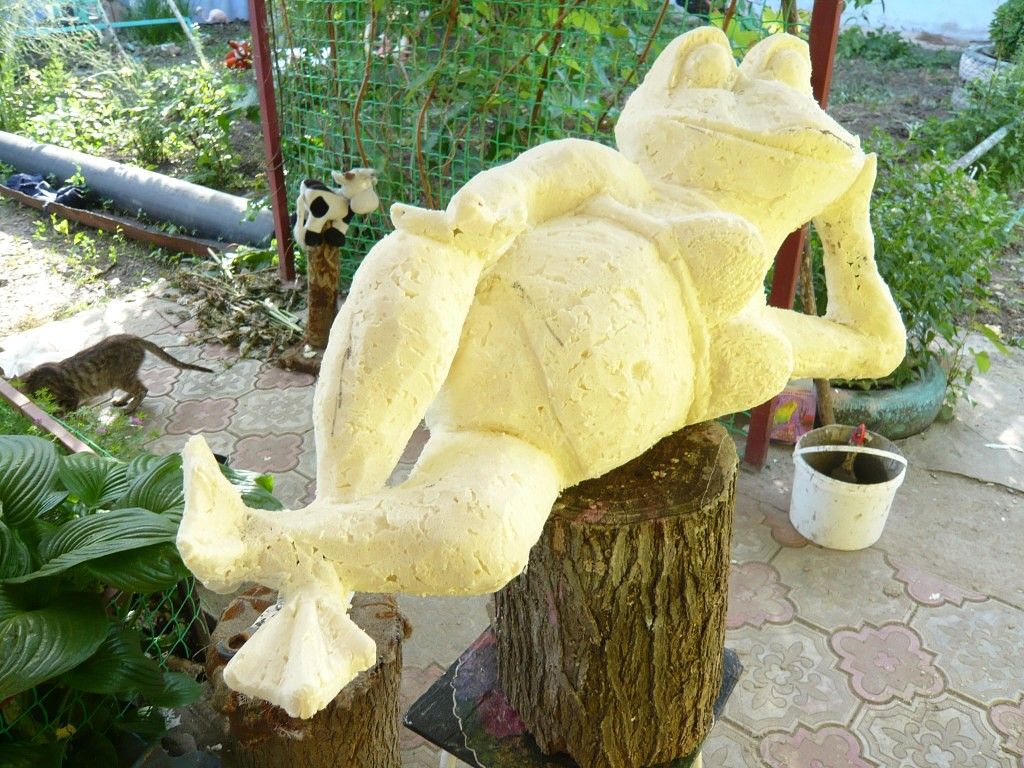 лягушка из пластиковой бутылки и монтажной пены, мастер класс, мк, лягушки из пластиковой тары, садовые фигуры для сада, своими руками, поделки из монтажной пены,поделки из отходных материалов,садовые скульптуры для дачи,украшаем свой водоем,декоративные лягушки для пруда, обустройство