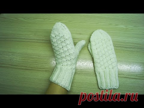 Варежки спицами | простой способ | узор "Звёздочки" спицами