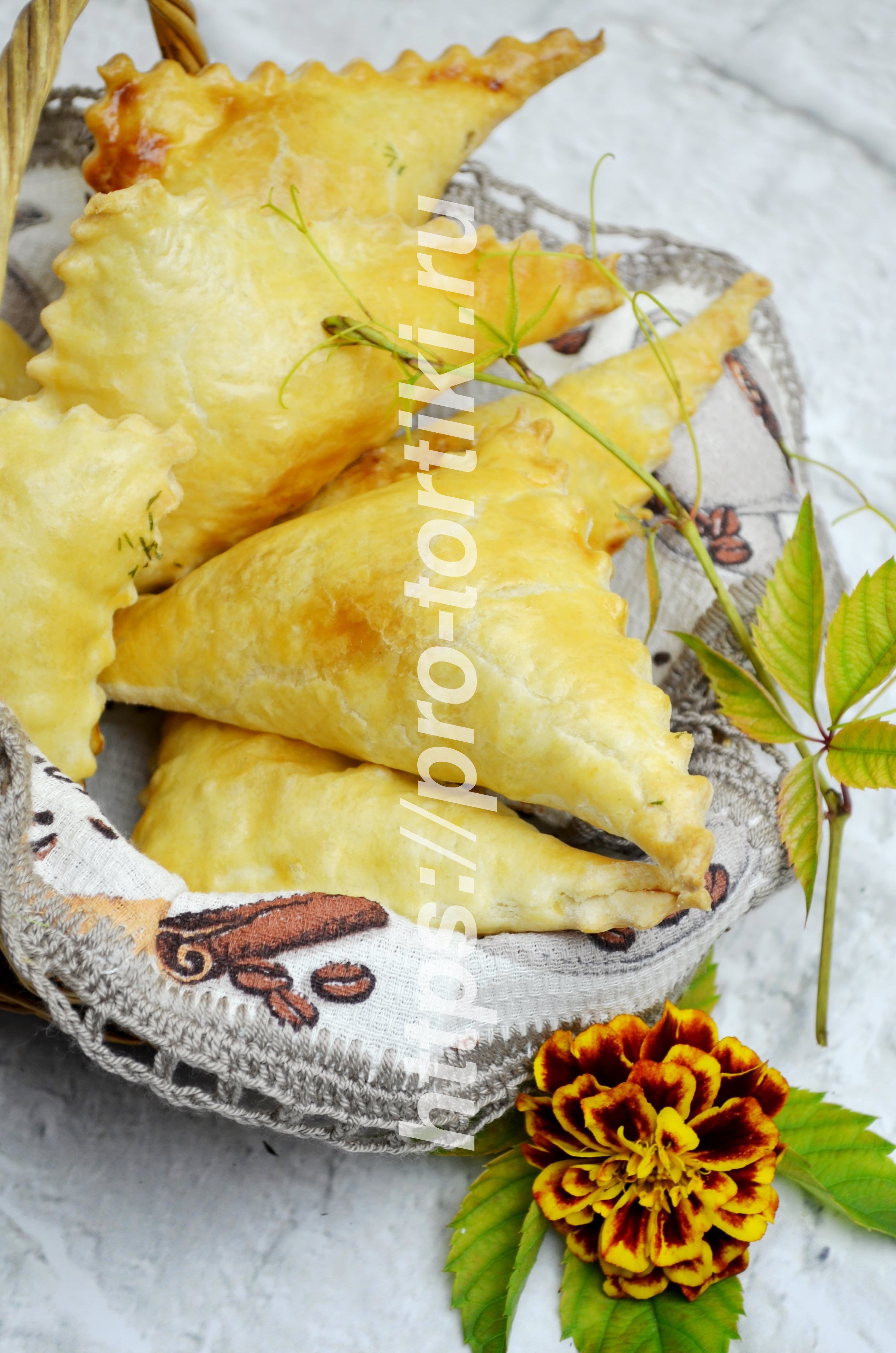 Слоеные пирожки с курицей в духовке - вкусный рецепт