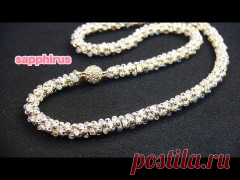 【ビーズステッチ】2mmのラウンドビーズとスワロフスキーで編むネックレスの作り方☆ How to make a necklace using 2mm swarovski crystals.