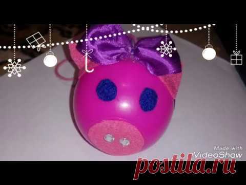 Новогодняя игрушка свинка на елку из яйца киндер сюрприз своими руками