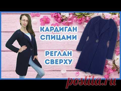 Кардиган спицами платочной вязкой из толстой пряжи регланом сверху на одной пуговице