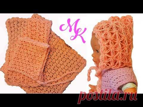 ВЯЗАНИЕ ДЛЯ ФОТОСЕССИЙ НОВОРОЖДЕННЫХ Крючком для начинающих Чепчик и плед Звездочки