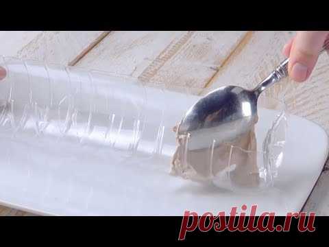 Для этого десерта режем пополам 2 пустые бутылки. Просто слюнки текут!