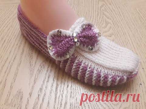 Тапочки-следки на двух спицах №4 (2часть)./Knitting shoes/खूबसूरत जूतिया बनाना सीखें