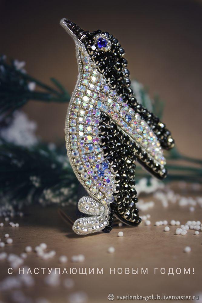 Вышиваем искрящуюся брошь «Пингвин» Сложность: средняя
