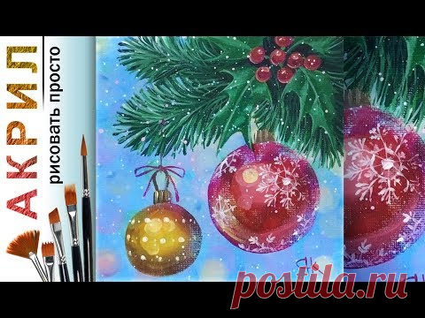 "Новогодние шары на елке", как нарисовать открытку🎨 АКРИЛ! ДЕМО Мастер-класс