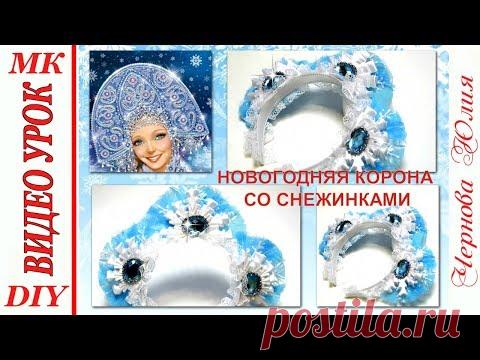 МК, НОВОГОДНЯЯ КОРОНА КАНЗАШИ// DIY NEW YEAR KANZASHI CROWN//КОРОНА СО СНЕЖИНКАМИ И ПЕРЬЯМИ