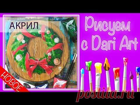 Видео урок! Рисуем Рождественский венок АКРИЛОМ\гуашью! #Dari_Art