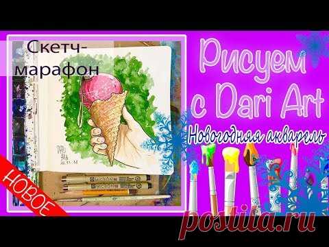 Скетч-Марафон "Новогодняя Акварель". Урок 3. Необычное мороженное. #Dari_Art