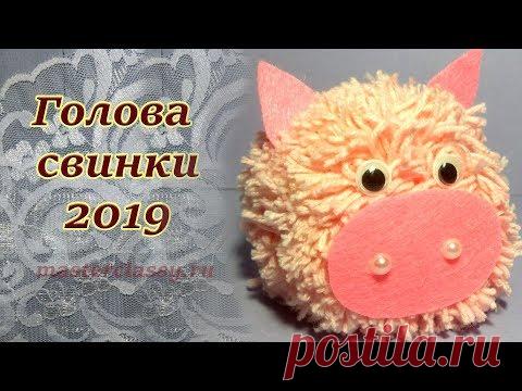 Простые поделки на Новый год 2019. «Голова свинки из помпона». Видео урок