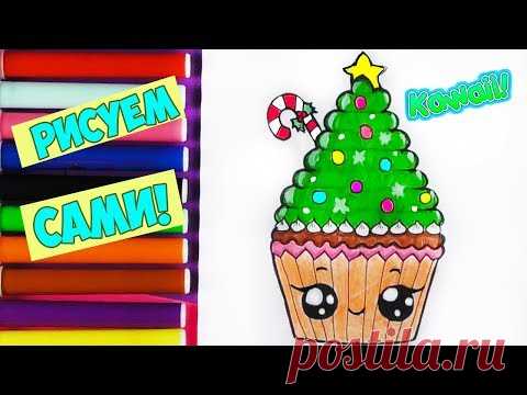Как нарисовать НОВОГОДНИЙ КЕКС / Кавайные рисунки для детей