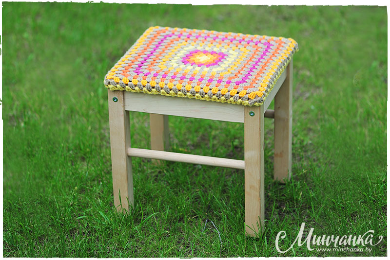 Вязаный чехол для табуретки - Эфария Творчество неисчерпаемо, вязальных дел мастера и любители применяют этот мотив по-новому, используют новые краски и приемы, привносят различные свежие и давно забытые нюансы. Тема бабушкиного квадрата неувядаема. Так вот Вам идея чехла на табурет. Нам понадобится: хлопковые или полушерстяные нитки разных оттенков; крючок подходящего размера; тонкая резинка. 1 ряд: 6 воздушных петель сомкните в колечко.