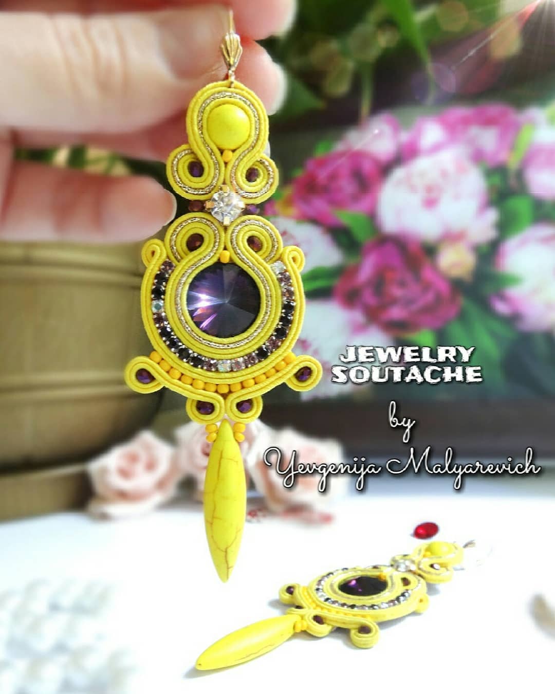 Евгения Маляревич в Instagram: «У меня лето во всем! Даже в работе! Сутажные серьги Сшиты вручную из отделочного шнура с использованием бусин, страз, натурального камня…»