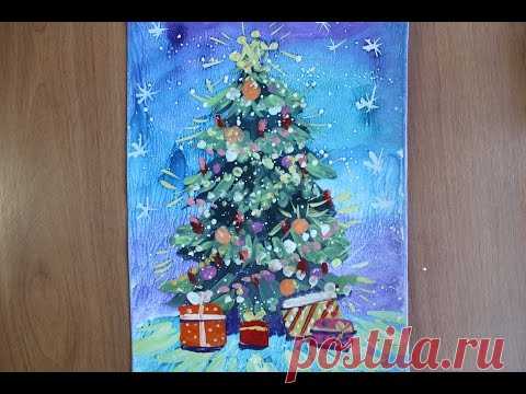 Как нарисовать Новогоднюю елку поэтапно гуашью. Видео уроки рисования для детей 4-8 лет