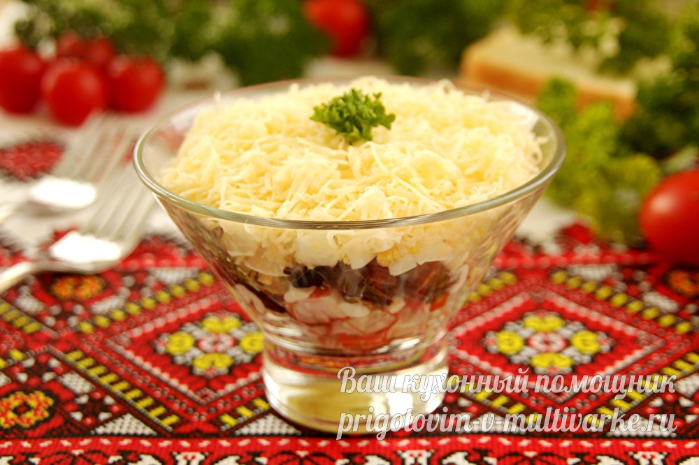 Салат "Званый ужин", рецепт с фото пошагово Слоеный крабовый салат "Званый ужин" готовится очень легко и просто, а получается изумительно вкусным. Пошаговый рецепт с фото раскроет все секреты приготовления.