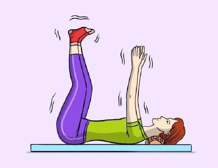 Это упражнение делается с валиком под шеей. Подложите валик в область шеи, поднимите руки и ноги вверх так, чтобы ладошки и стопы ног были параллельны потолку, и выпрямит...