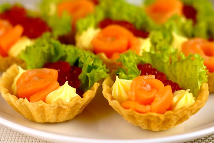 Праздничный рецепт изысканных тарталеток с красной рыбой и икрой Приготовление этого блюда займет у вас минимум времени и сил, есть только одно но — съедят их тоже очень быстро) Зато вам точно скажут: спасибо. Так что давайте знакомиться поближе с нашими закусочными тарталетками.