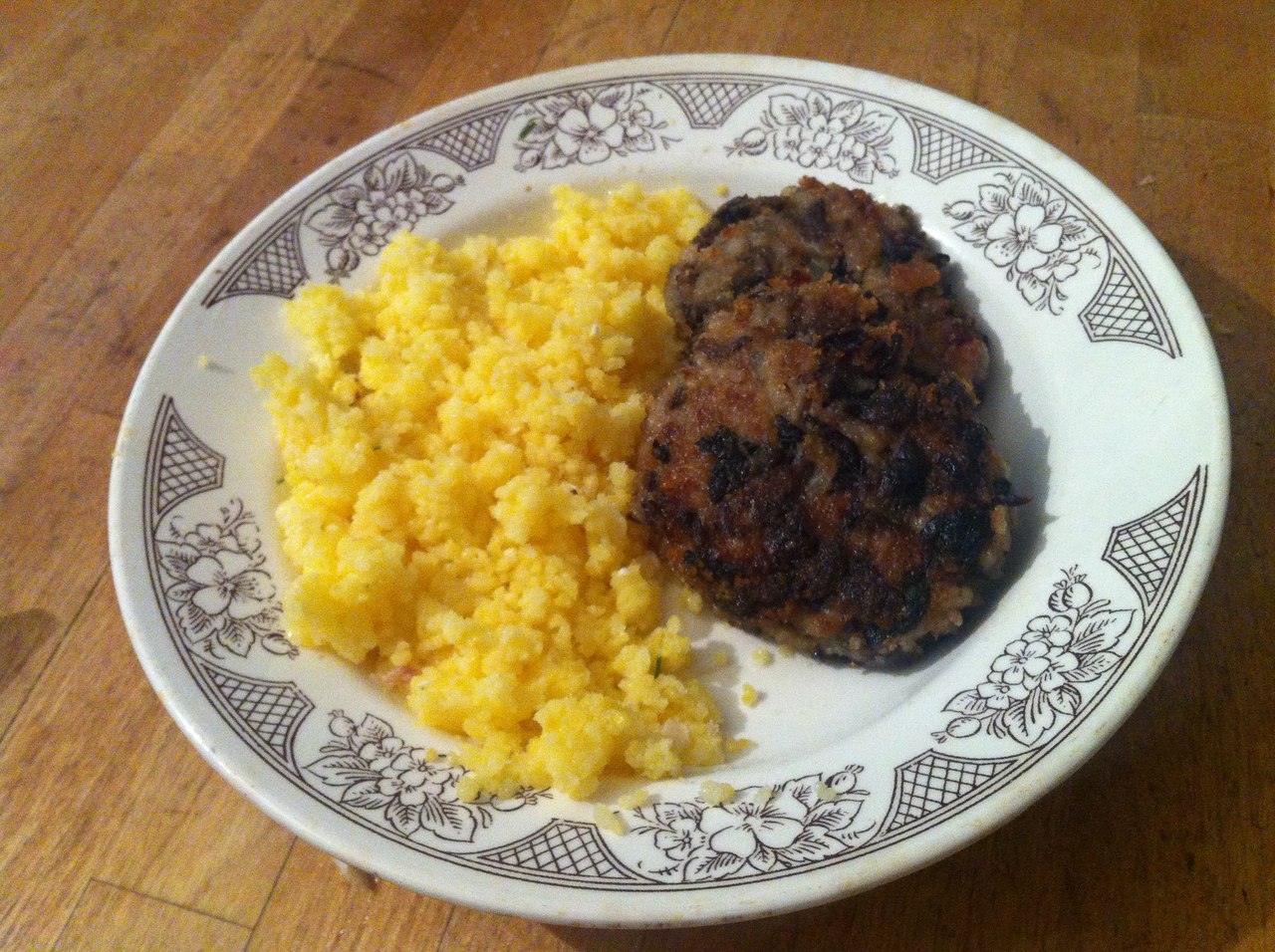 Грибные котлетки Нам понадобится 100 г сухих грибов, 1-1,5 стакана рисовой каши-размазни, 4 средних луковицы, 3 ст л муки, соль, перец, приправы по вкусу, раст масло. Отваренные сухие грибы мелко изрубить, смешать с кашей, добавить соль, перец, приправы. Слегка поджарить лук в небольшом количестве растительного масла, смешать с грибной смесью, добавить туда же муку. Наделать небольших котлеток, обвалять в муке или сухарях и жарить в масле.