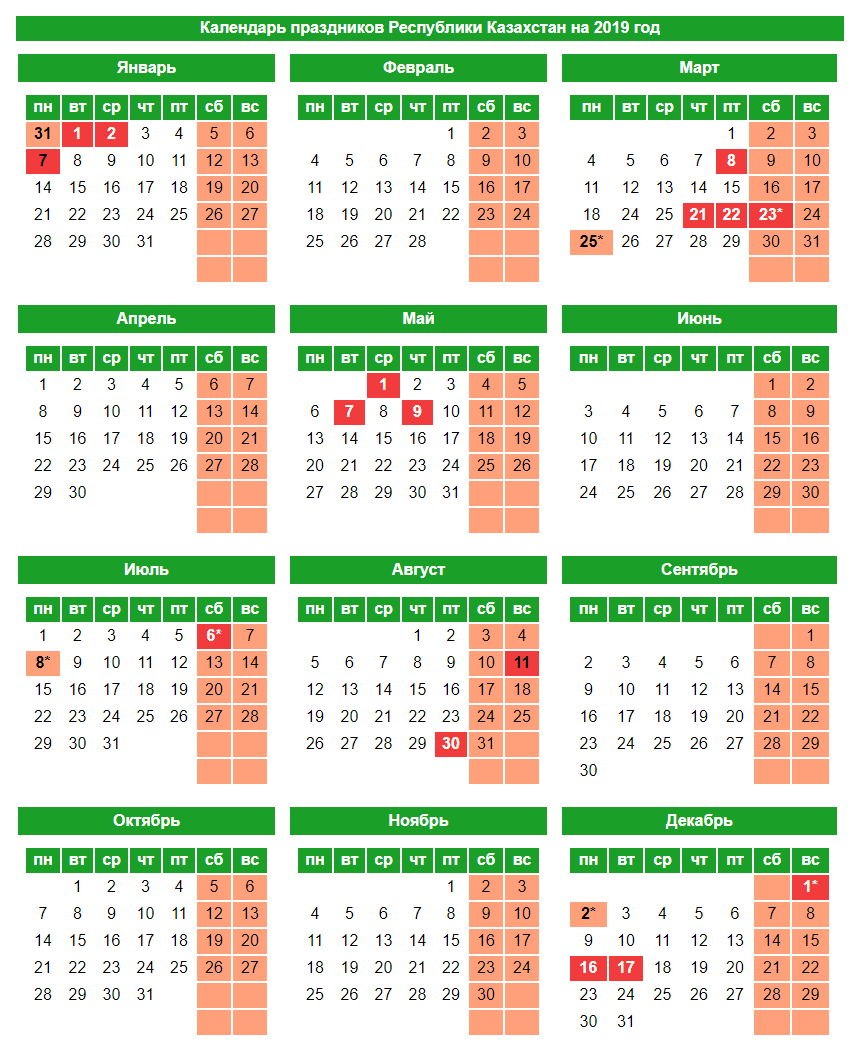 119 дней отдохнут казахстанцы в 2019 году - Mail Новости