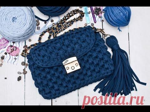 Сумка из трикотажной пряжи, кроссбоди, сумка крючком вытянутыми столбиками