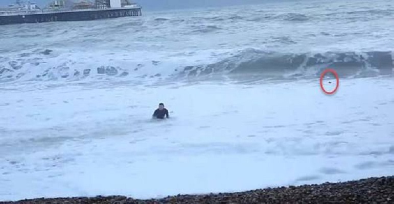 Очевидцы сняли, как девушка отчаянно что-то ищет в воде. Девушка что-то пыталась найти в воде у нее ничего не получалось, но после очередной волны ей все же удалось найти то, что искала Молодая девушка прогуливалась по пляжу со своим парнем, рядом с ними бежала собака, кажется ничего особенного, но вдруг огромная волна просто смыла с берега пса