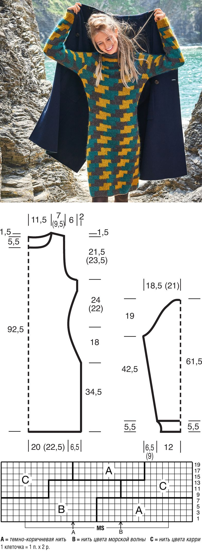 Платье с узором в технике интарсий - схема вязания спицами. Вяжем Платья на Verena.ru