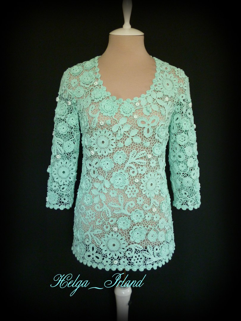 Блуза "Льдинка", 46-48 размер, 3/4 рукав, длина-70, ОГ- 92, ОТ-84, ОБ-108 .Цвет айсберг, хлопок.