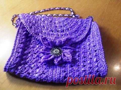 Вязание из пакетов . Сумка с застежкой- цветком
