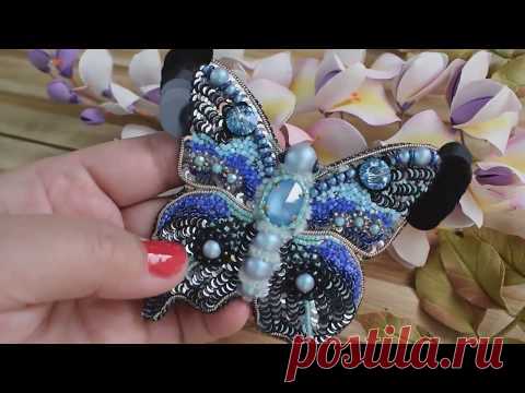 Вышивка бисером и пайетками. Брошь подвеска бабочка "Морфо".Beaded Brooch butterfly (embroidery).