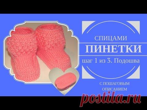 ПИНЕТКИ СПИЦАМИ С ПОШАГОВЫМ ОПИСАНИЕМ. Шаг 1 из 3. Подошва пинетки спицами с пошаговым описанием
