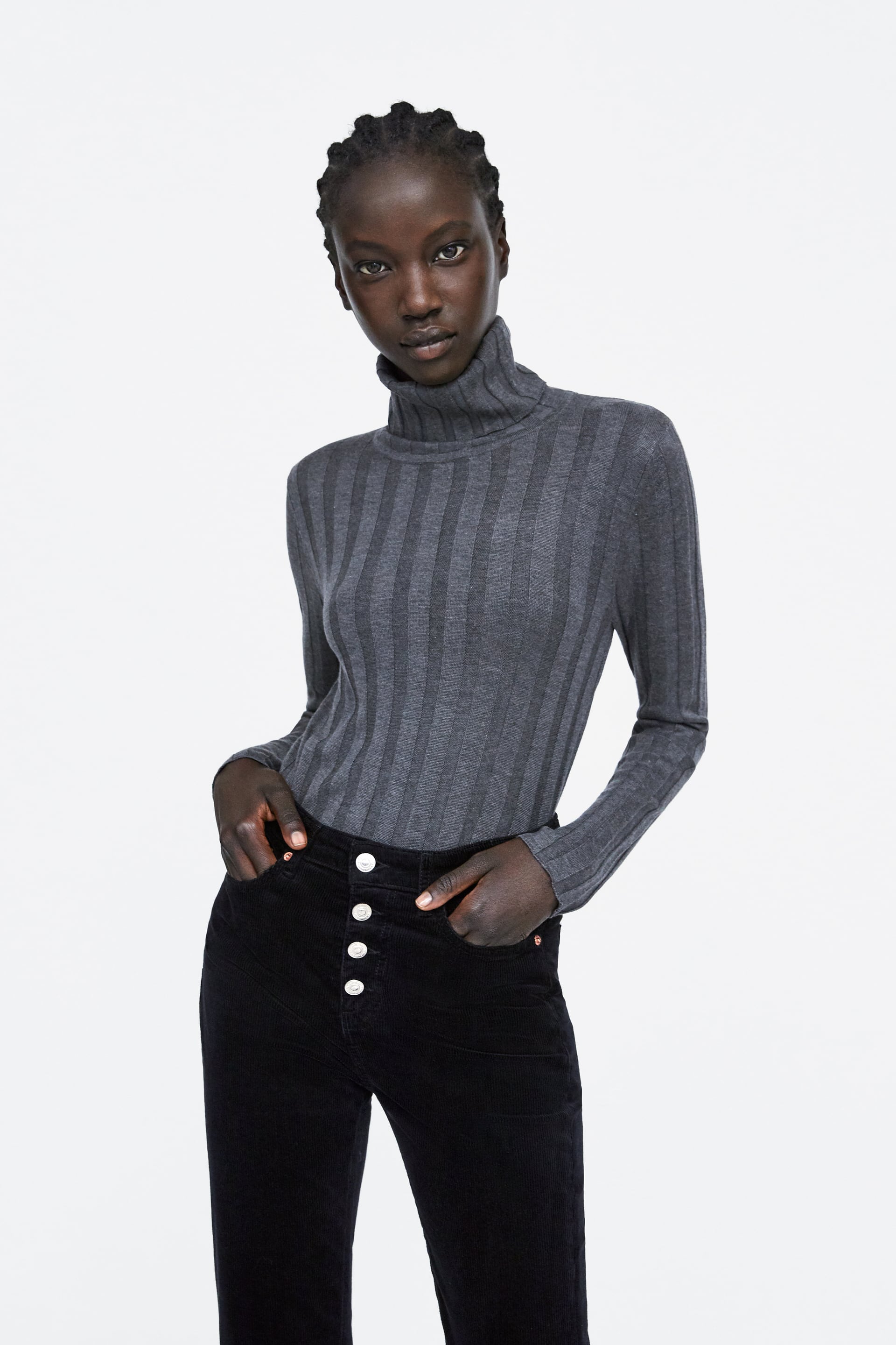 СВИТЕР ИЗ РИФЛЕНОГО ТРИКОТАЖА С ВЫСОКИМ ВОРОТНИКОМ - Свитера-ТРИКОТАЖ-ЖЕНЩИНЫ-РАСПРОДАЖА | ZARA Российская Федерация