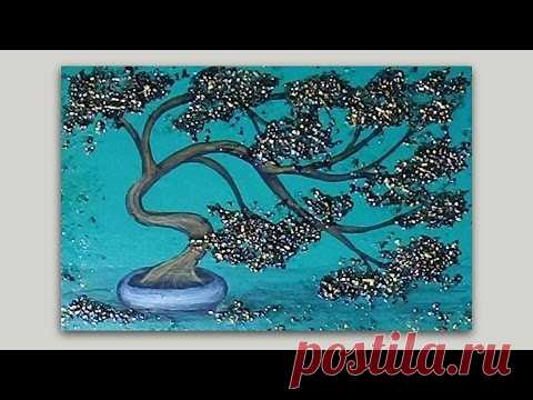 Golden Bonsai Tree Acrylic Painting with Texture